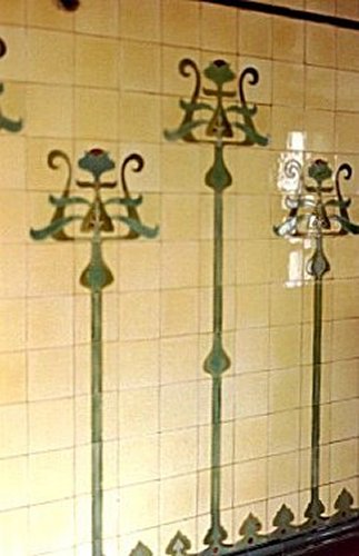In 2001 Penny Parker, of the Tiles and Architectural Ceramics Society, identified the tiles as having been manufactured by Maw and Co in about 1905.